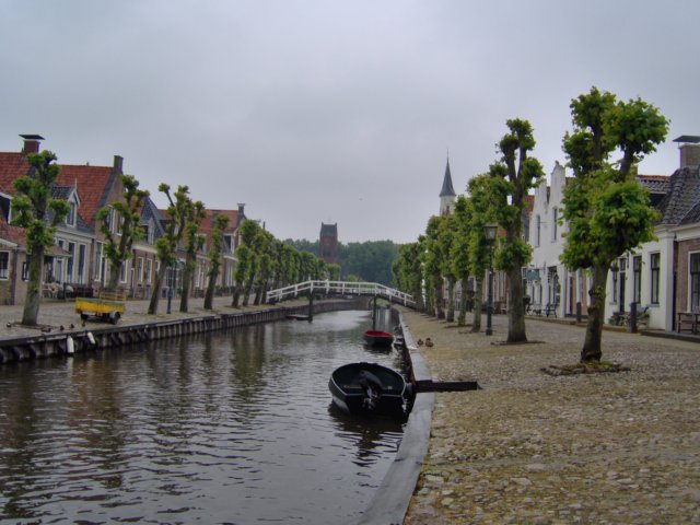 We zijn BB afgemeerd aan een graskant voor de eerste brug voor de stad.